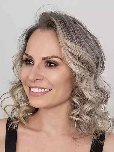 Blonde Lockige Synthetikperücke Schulterlang Ohne Pony