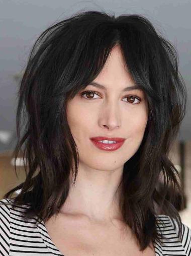 Glatte Schwarze Lace Perücke Gestufter Schulterlanger Stil