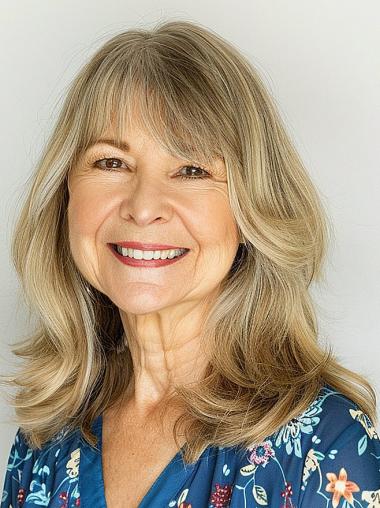 Blonde Remy Echthaarperücke mit Pony Schulterlang
