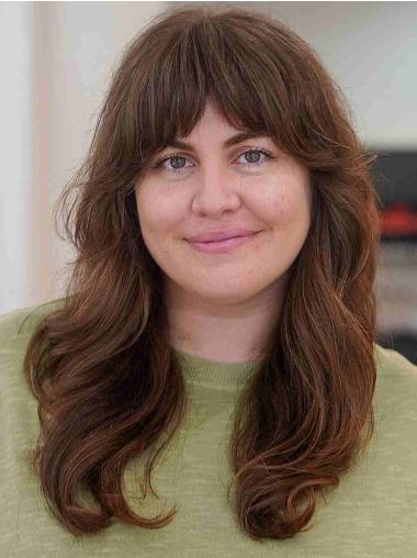 Braune Gewellte Echthaar Lace Front Perücke Mit Pony