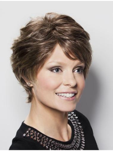 Gestufte Gewellte Echthaar Perücke Chic Look