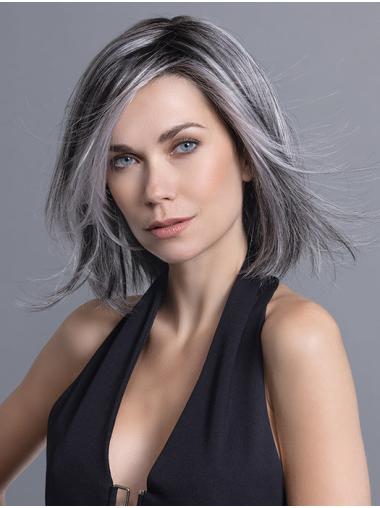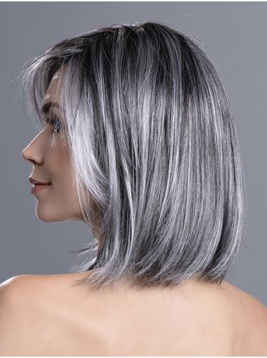 Graue Glatte Bob Perücke Schulterlang Monofilament Stil