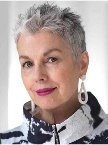 Graue Glatte Boycut Perücke aus Echthaar Kurzer Cropped Stil
