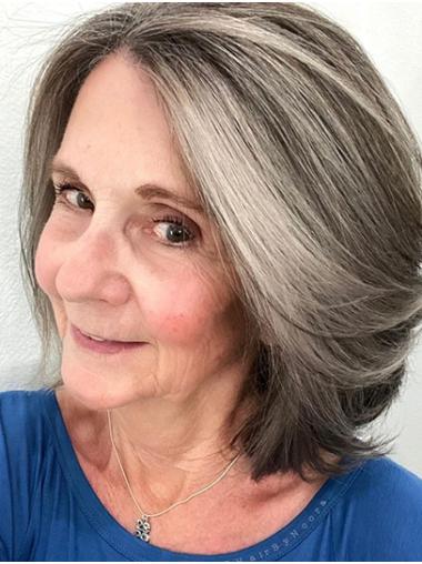 Kinnlange Graue Bob Perücke 10" Glattes Remy Echthaar