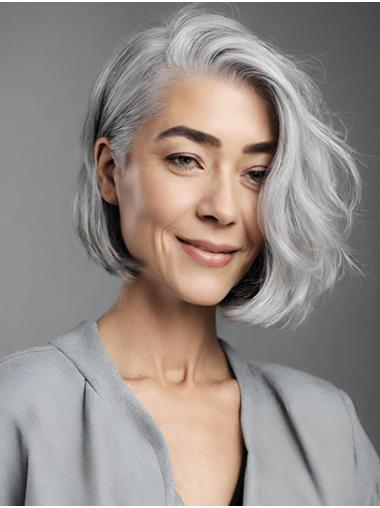 Kinnlange Graue Gewellte Synthetische Damenperücken