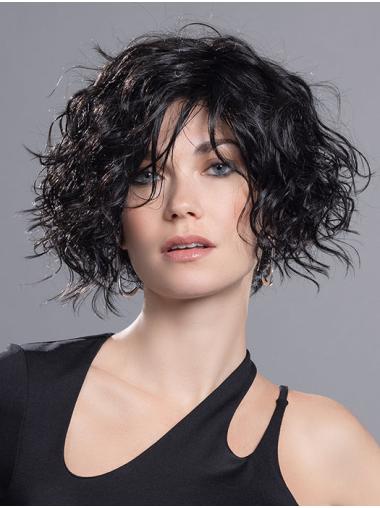 Schwarze Lockige Bob Perücke aus Echthaar Komfort und Stil