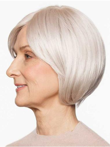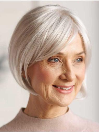 Kinnlange Weiße Bob Perücken Synthetikhaar Glatt DE
