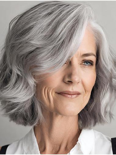 Kinnlanger Gewellter Bob Graue Echthaarperücke Für Ältere Damen