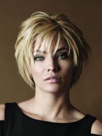 Kurze Gestufte Echthaarperücke Glattes Haar für Damen
