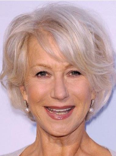 Kurze Gewellte Graue Echthaarperücke Mit Offenem Kappendesign