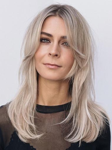 Lange 16 Zoll Platinblonde Perücke Glattes Gestuftes Echthaar