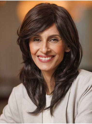 Lange Braune Gewellte Perücke Gestuftes Synthetikhaar