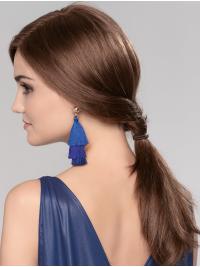 Lange Glatte Blonde Echthaar Perücke Ohne Pony