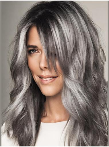 Lange Synthetische Gewellte Graue Stufige Perücke Für Damen
