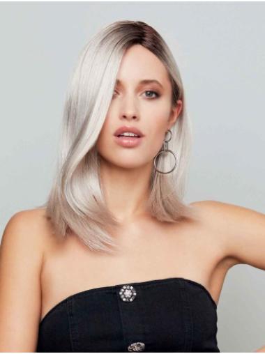 Schulterlange Graue Synthetikperücke Für Damen Glatt