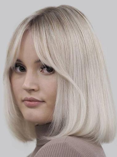 Schulterlange Platin Bob Perücke Glattes Remy Echthaar